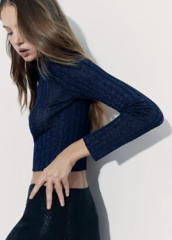 Jersey De Canale De Lurex De Manga Larga Y Cuello Alto.Composicion: