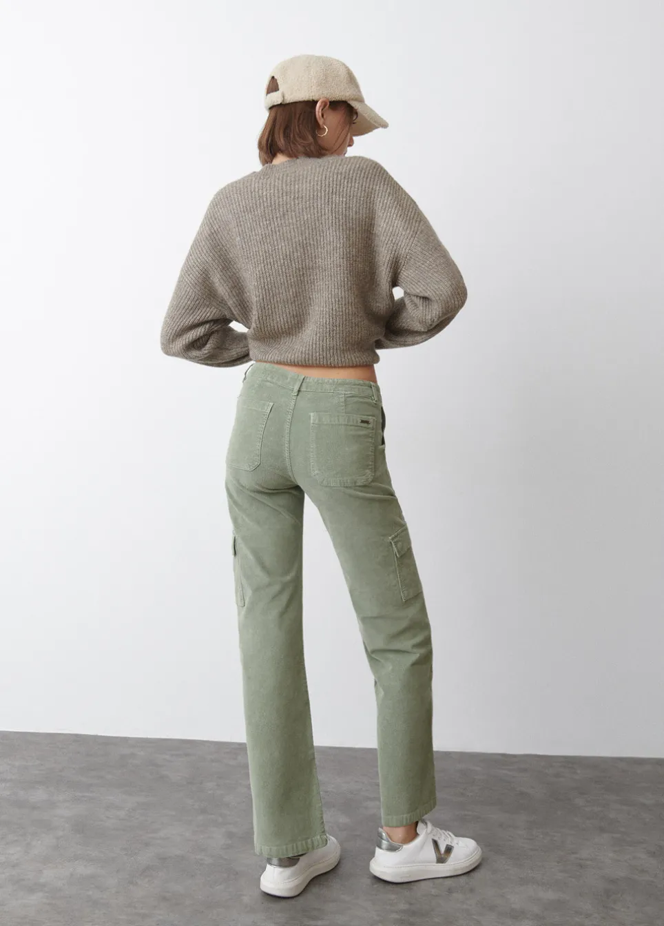 Pantalones De Campana De Pana Estilo Cargo Con Bolsillos. Cierre Mediante Cremallera Y Boton En El Frontal.Composicion: